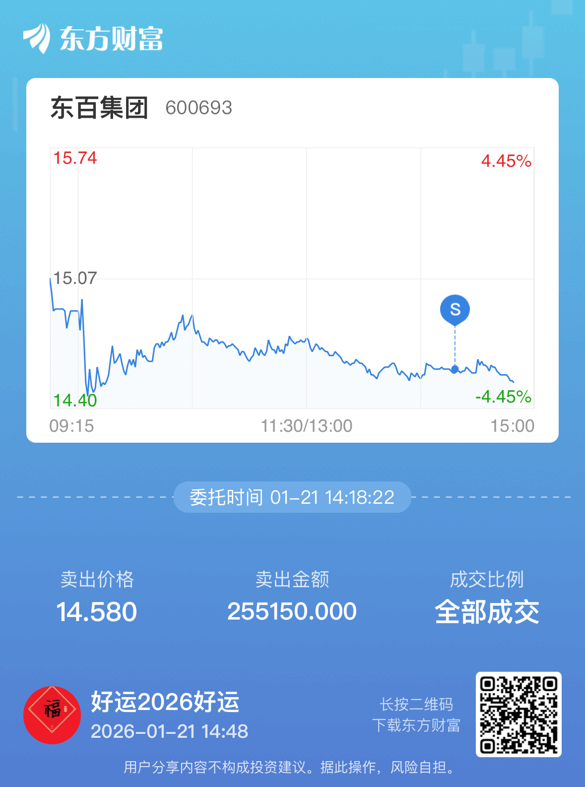 温馨提示: 1.根据《证券法》规定,禁止编造、传播虚假信息或者误导性信息,扰乱证券市场;2.用户在本社区发表的所有资料、言论等仅代表个人观点,与本网站立场无关,不对您构成任何投资建议。用户应基于自己的独立判断,自行决定证券投资并承担相应风险。《东方财富社区管理规定》