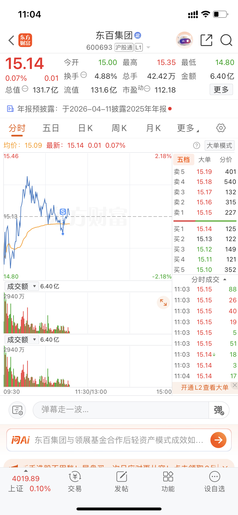 $东百集团(SH600693)$ 我不卖你不涨是吧