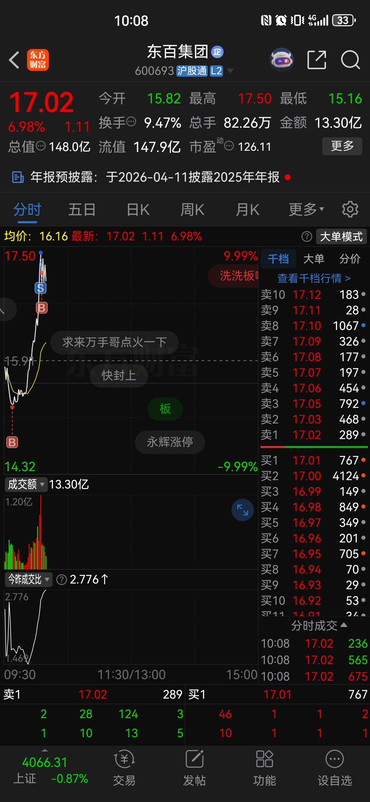$东百集团(SH600693)$ 又接回来了,不知是对是错啊