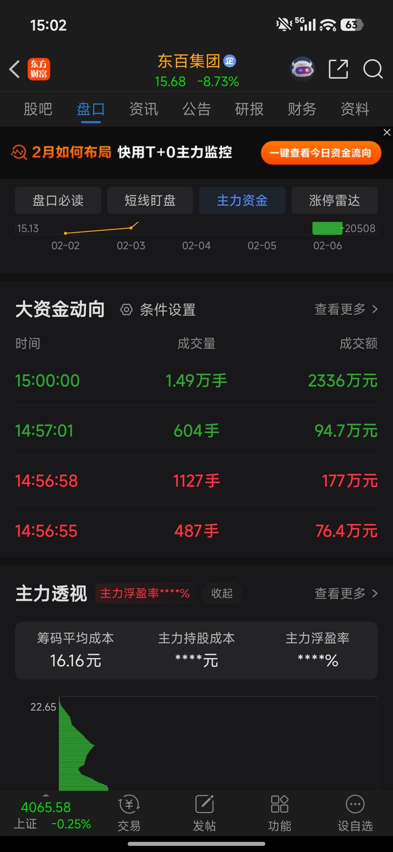 $东百集团(SH600693)$ 尾盘跑 1.5万手