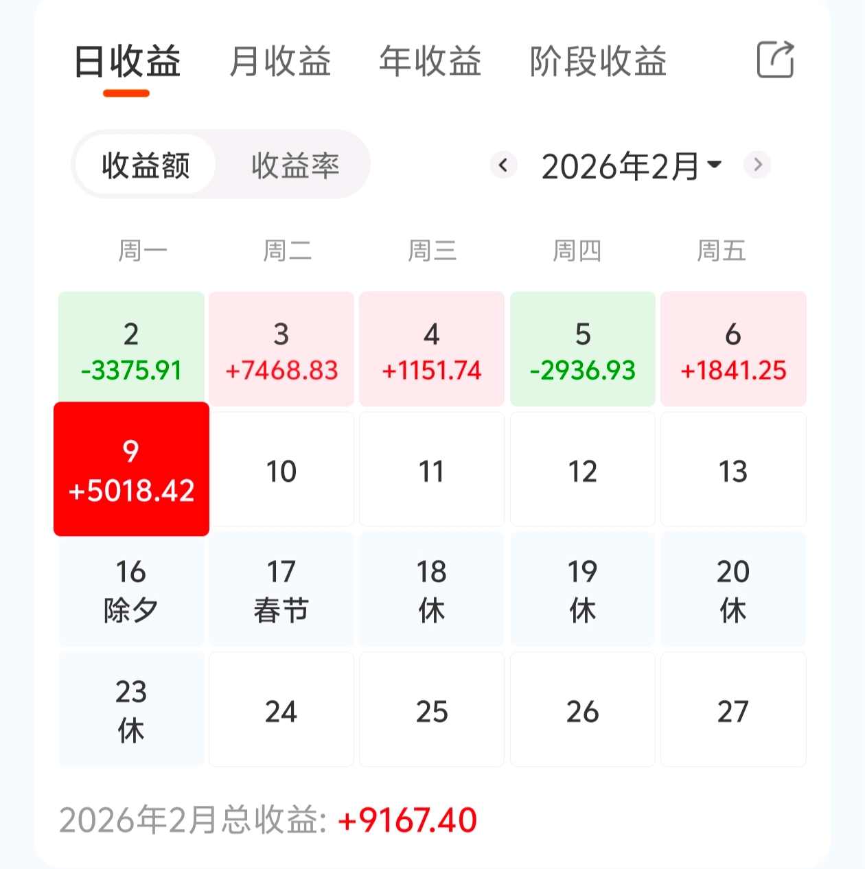 2月9日,周一收盘啦!感谢珠丽,感谢过年红包普天同庆!!!大家都赚钱,哈哈哈