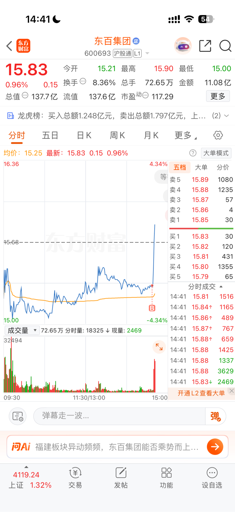 $东百集团(SH600693)$ 吼吼明天可以吃肉吗