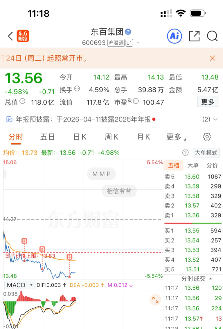 $东百集团(SH600693)$ 高端局!狗主力!小心老子Tsi你!
