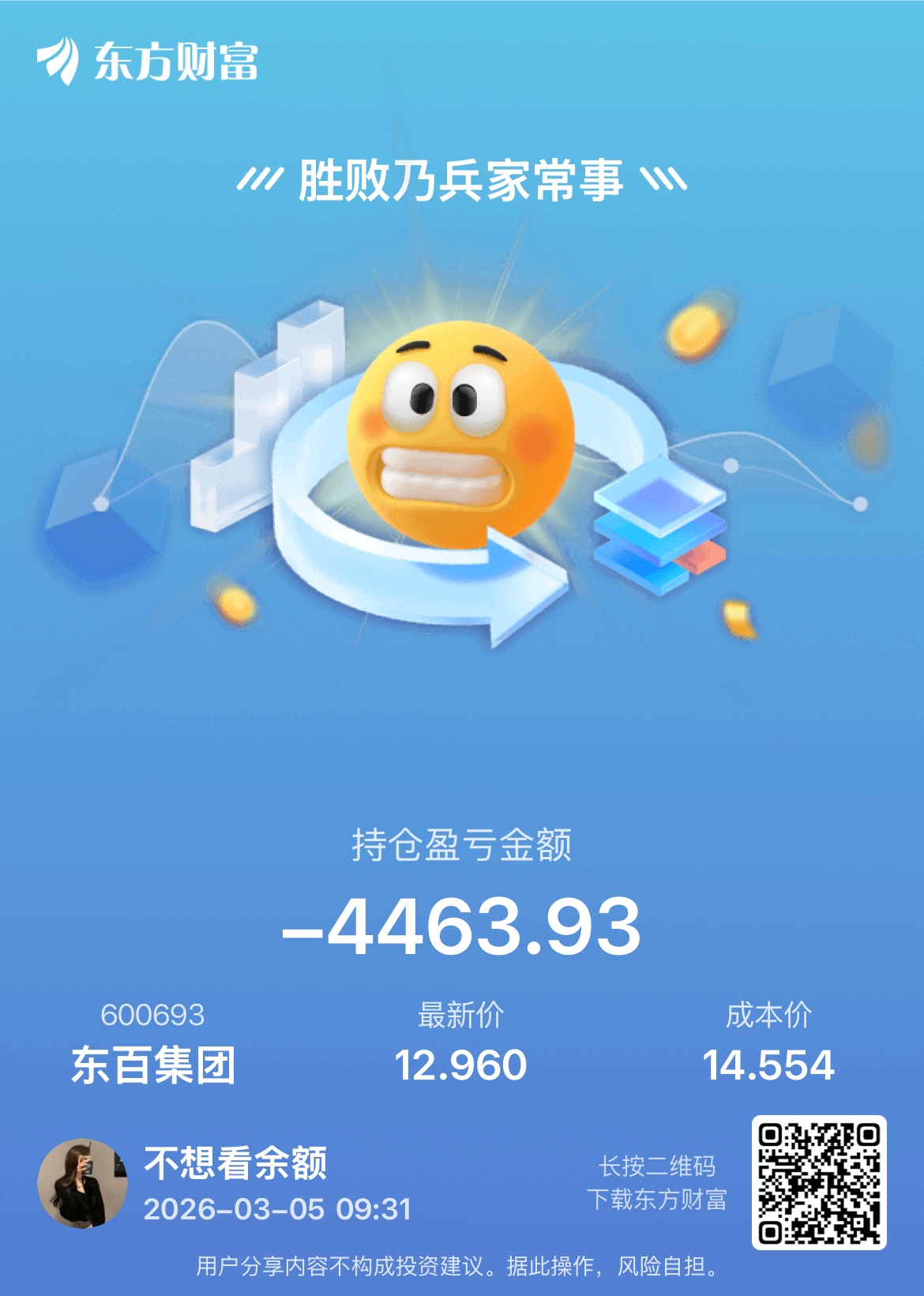 温馨提示: 1.根据《证券法》规定,禁止编造、传播虚假信息或者误导性信息,扰乱证券市场;2.用户在本社区发表的所有资料、言论等仅代表个人观点,与本网站立场无关,不对您构成任何投资建议。用户应基于自己的独立判断,自行决定证券投资并承担相应风险。《东方财富社区管理规定》