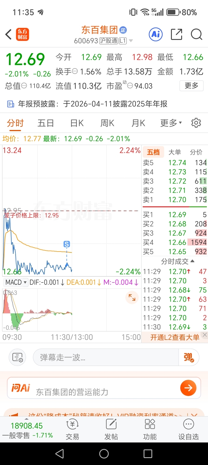 $东百集团(SH600693)$ 我己含泪割肉了,满足了你们的心愿,你们可以拉了