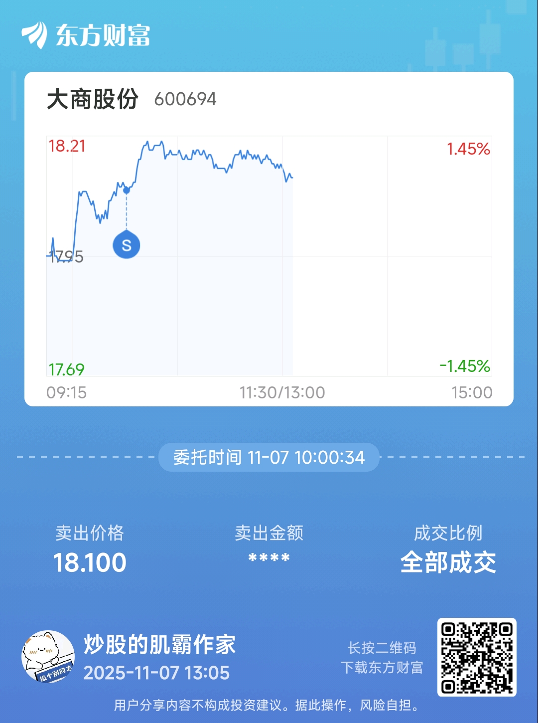 $大商股份(SH600694)$ 每次都卖飞,不过每次都在大商赚到了点