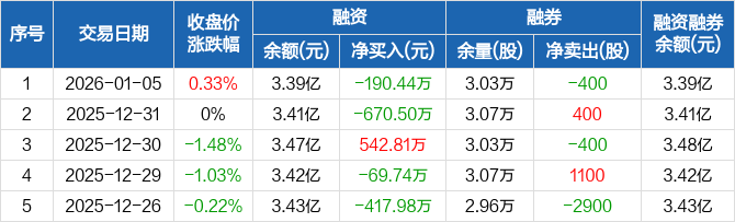 大商股份:融资净偿还190.44万元,融资余额3.39亿元(01-05)