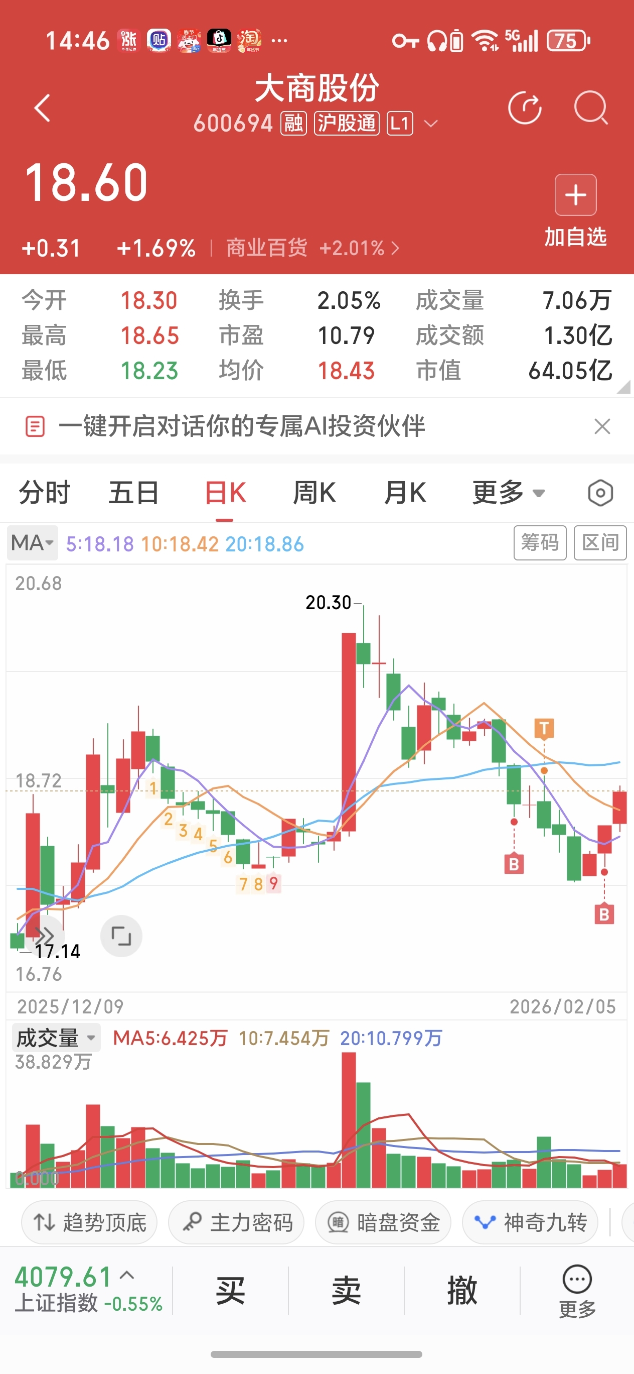 $大商股份(SH600694)$ 不给我继续加仓的机会了