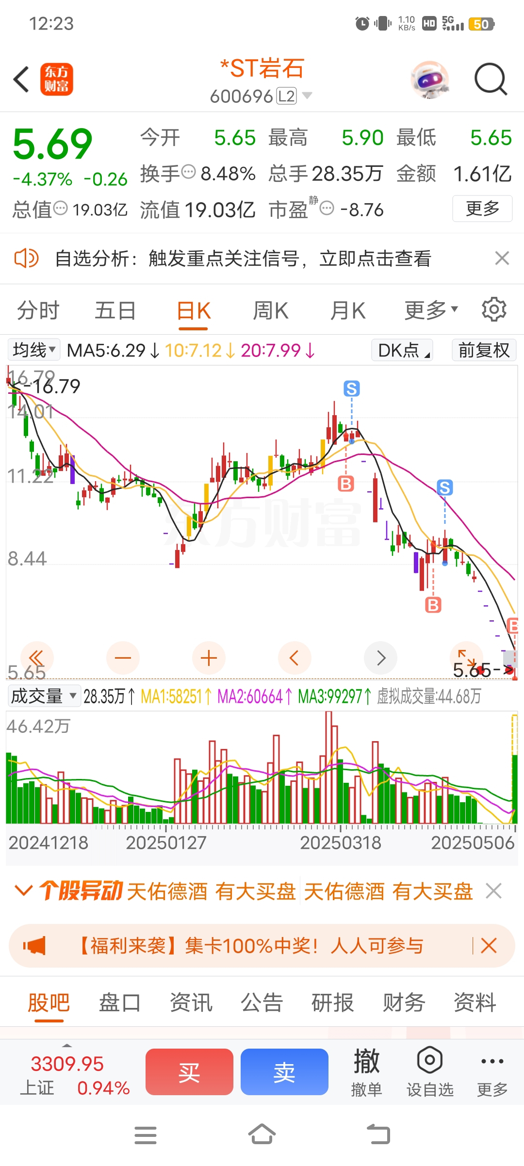 $*ST岩石(SH600696)$ 难道今天又买错了?