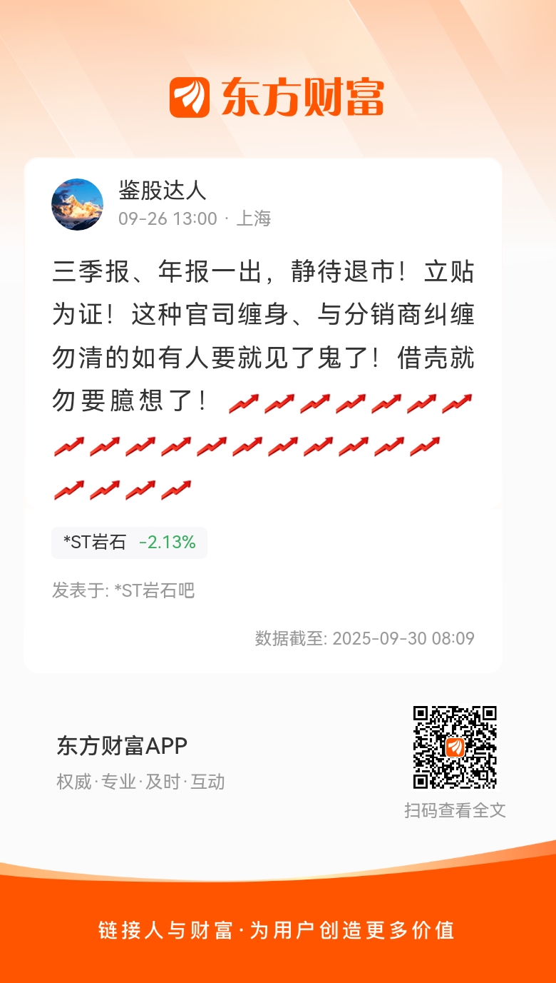 温馨提示: 1.根据《证券法》规定,禁止编造、传播虚假信息或者误导性信息,扰乱证券市场;2.用户在本社区发表的所有资料、言论等仅代表个人观点,与本网站立场无关,不对您构成任何投资建议。用户应基于自己的独立判断,自行决定证券投资并承担相应风险。《东方财富社区管理规定》