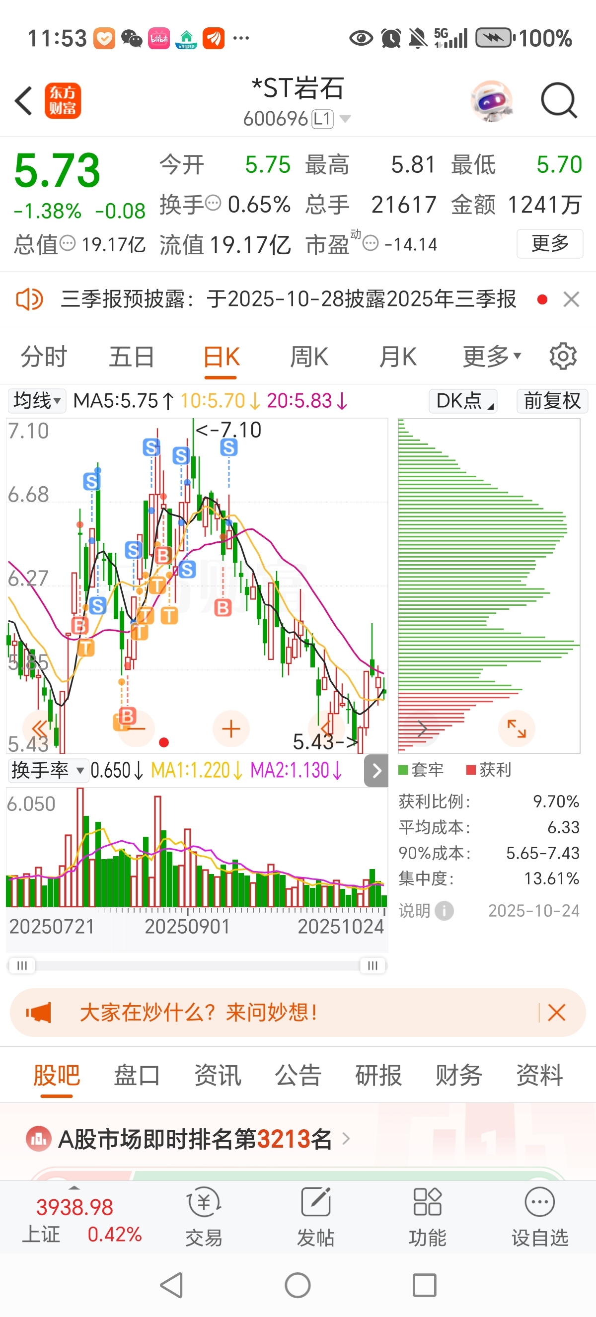 $*ST岩石(SH600696)$ 清的及时,没亏钱