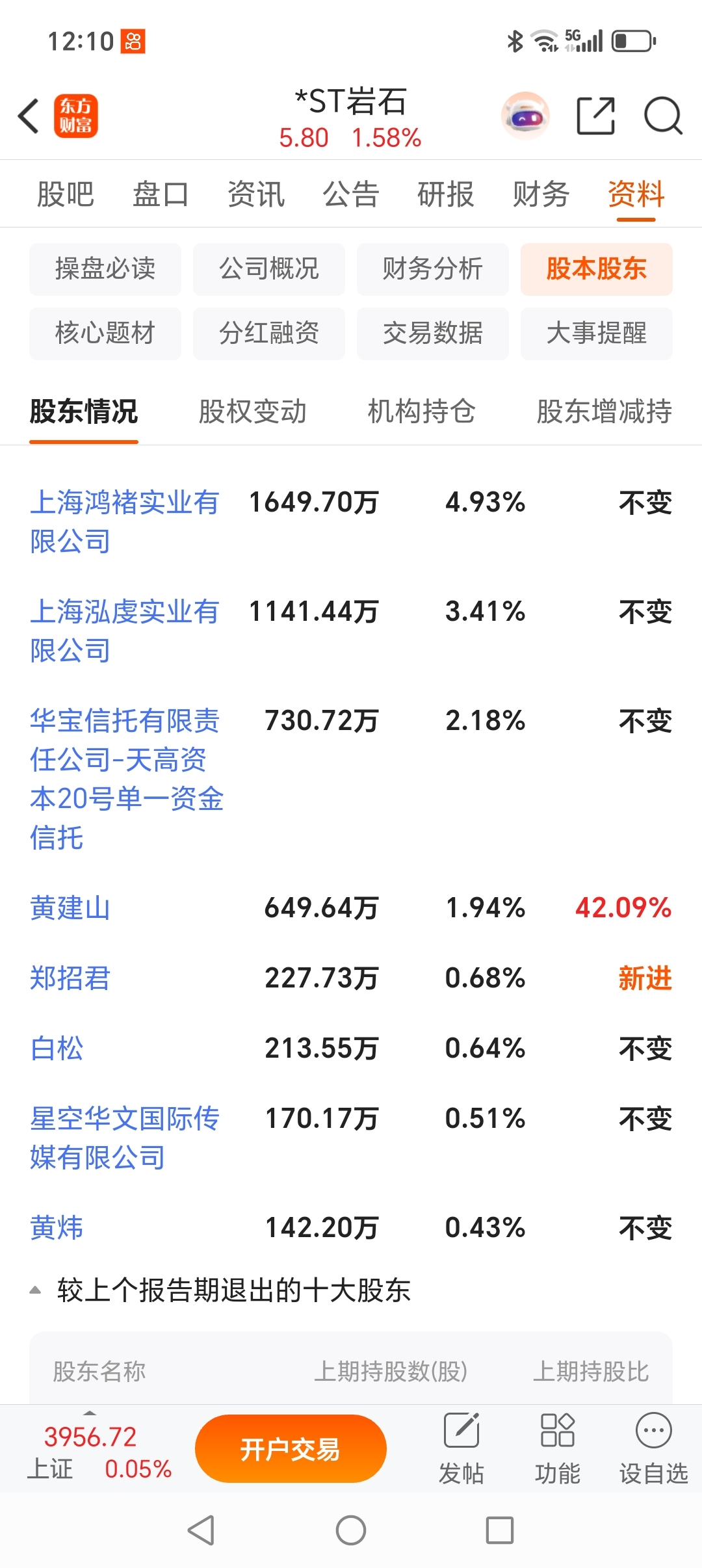 $*ST岩石(SH600696)$ 十大股东新进来的是啥想法
