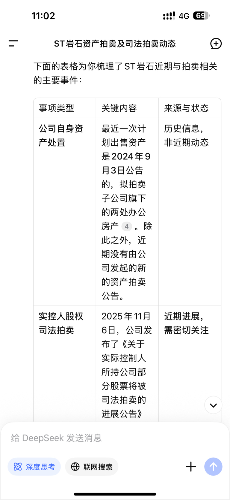 $*ST岩石(SH600696)$ 公告呢?还不发?拍卖