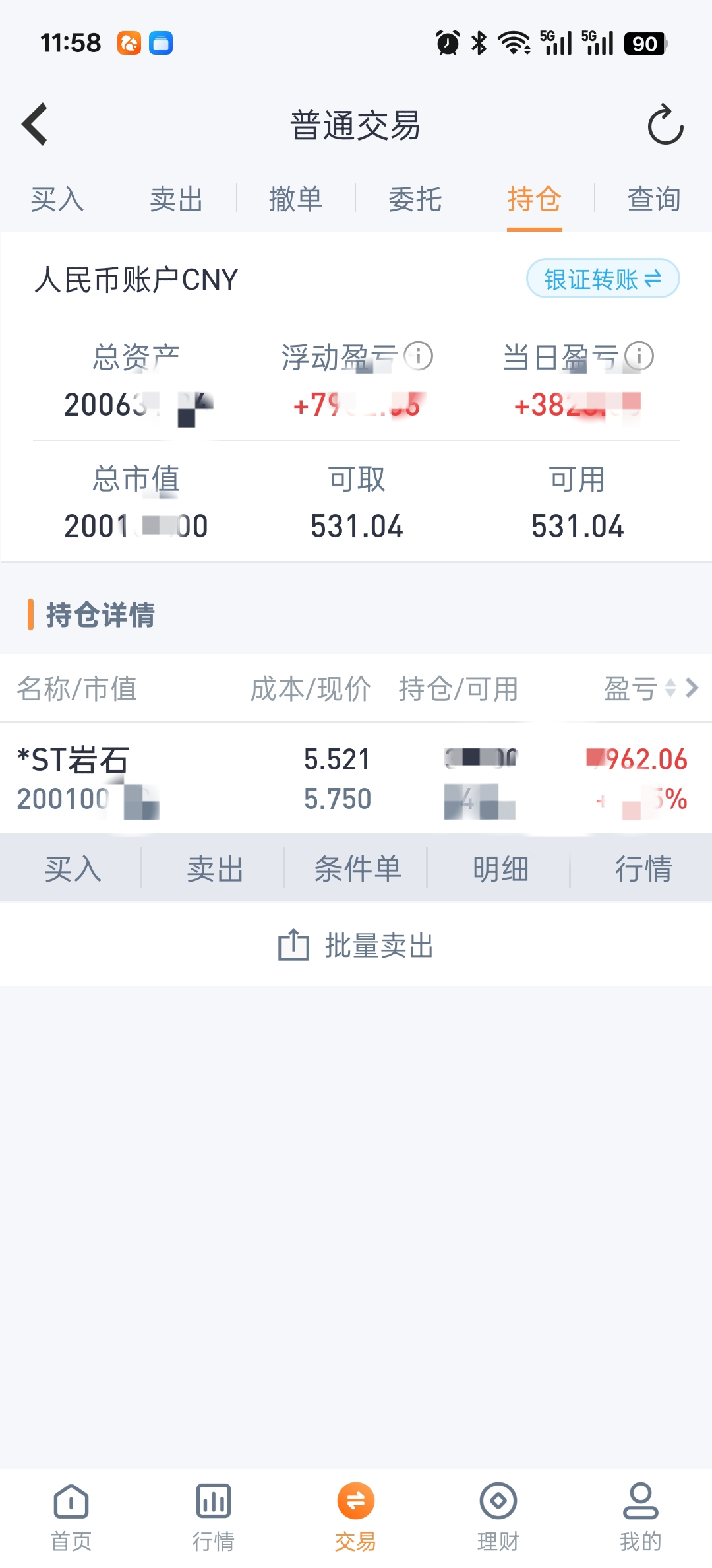 其中的一个账号。就当岩石已经退市了,全部计提损失。退就退吧。认赌服输。大盘400