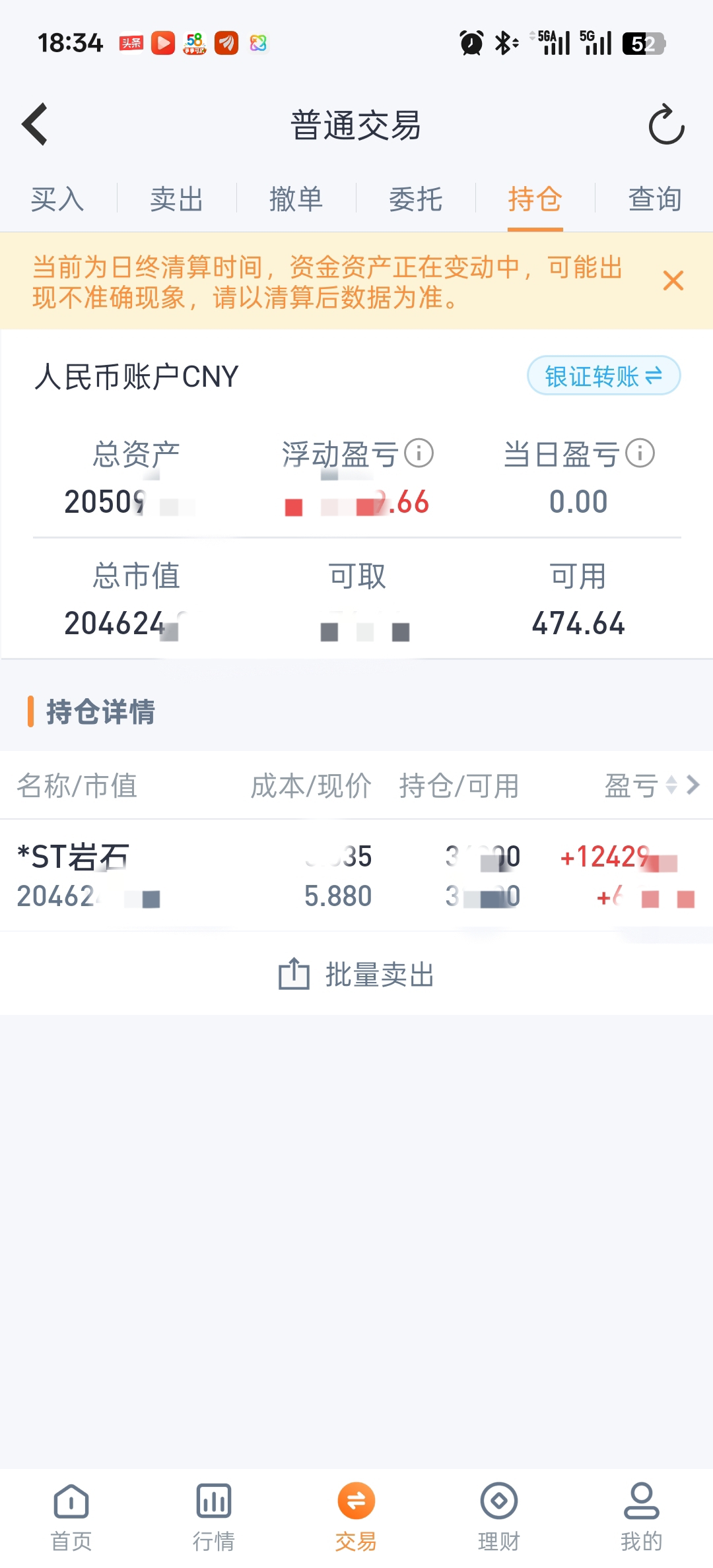 $*ST岩石(SH600696)$ 散户抓紧卖掉st岩石,尽量不要买。追涨杀跌,不利于st岩石后面的走势。毕竟退市风险很高。本人准备想低价再买几万股,凑合30