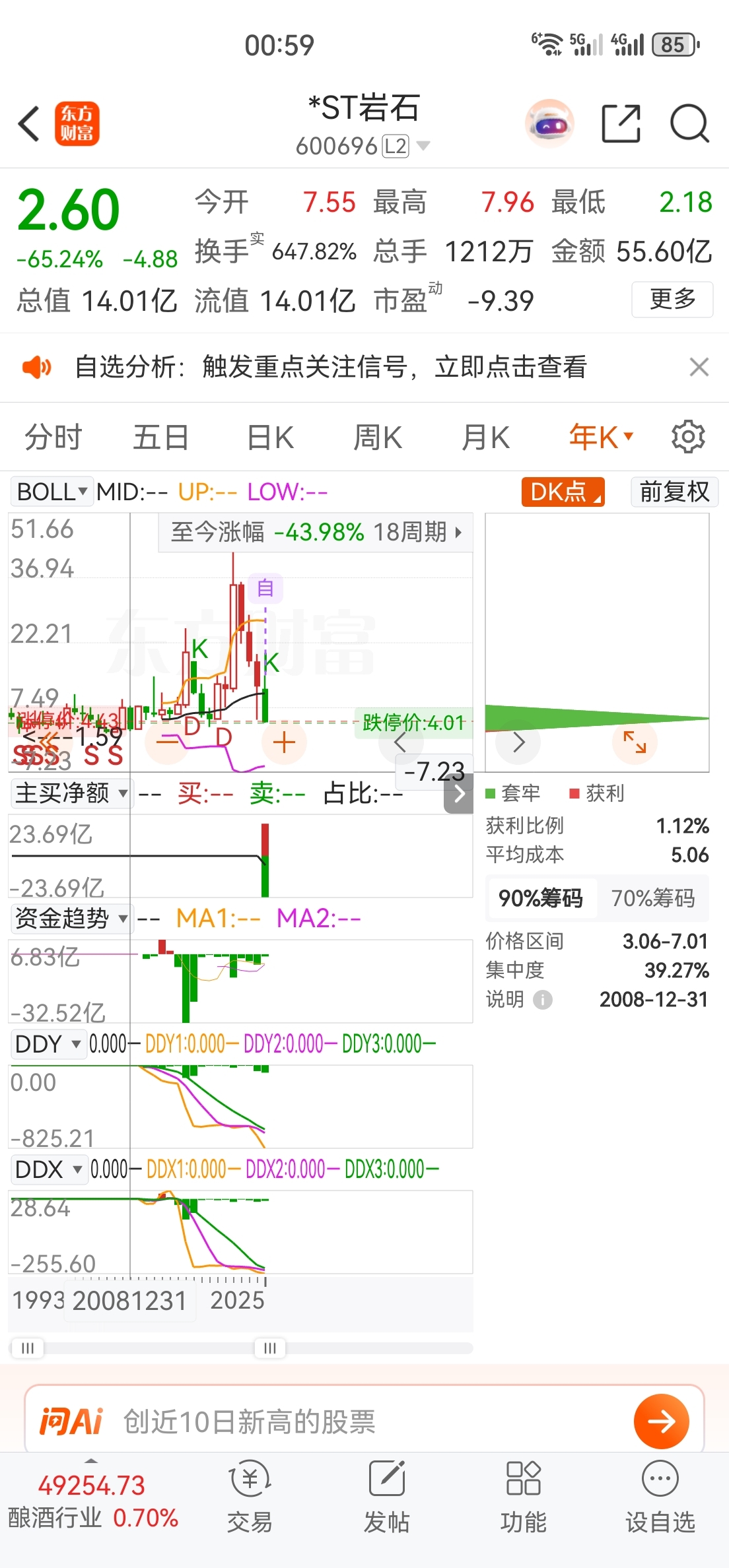 $*ST岩石(SH600696)$ 底部在2.3-2.6之间大家赶紧逃吧,我亏了500块割肉了