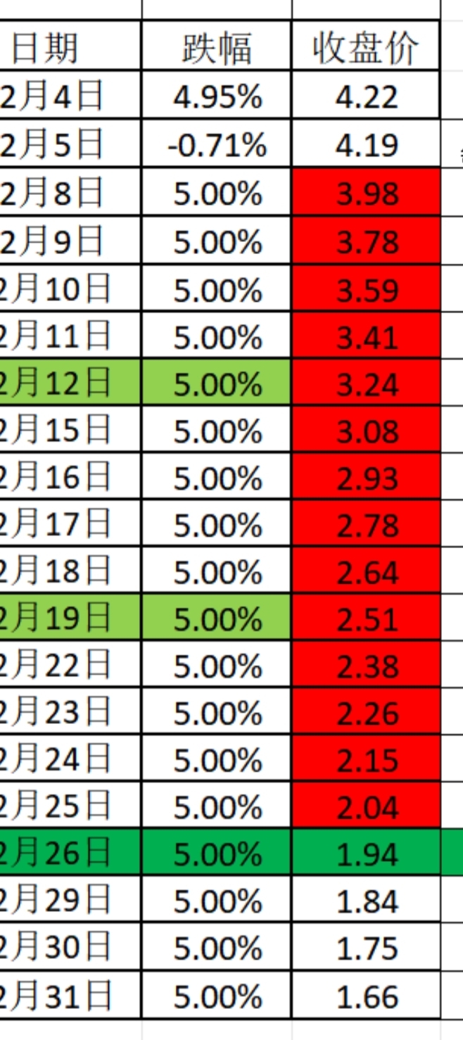 $*ST岩石(SH600696)$ 12月份st岩石走势,参考表。