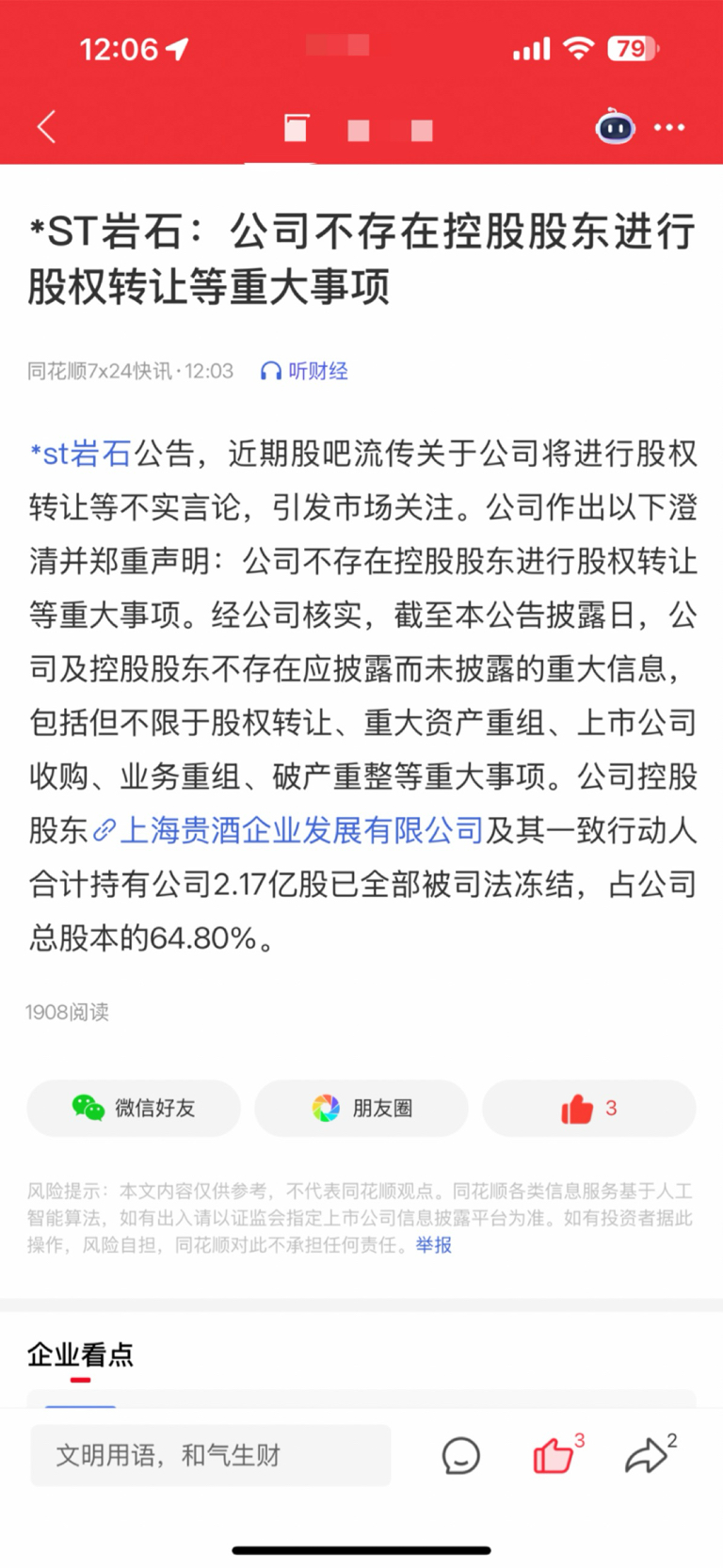 $*ST岩石(SH600696)$ 盘中发大利空,是何居心