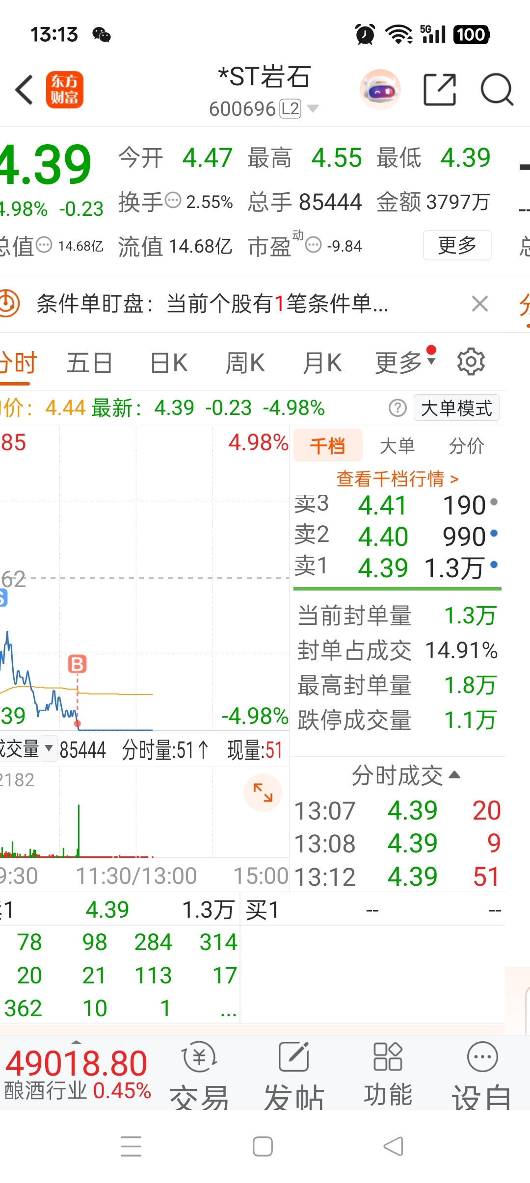 $*ST岩石(SH600696)$ 跌停买了,爱咋咋地。