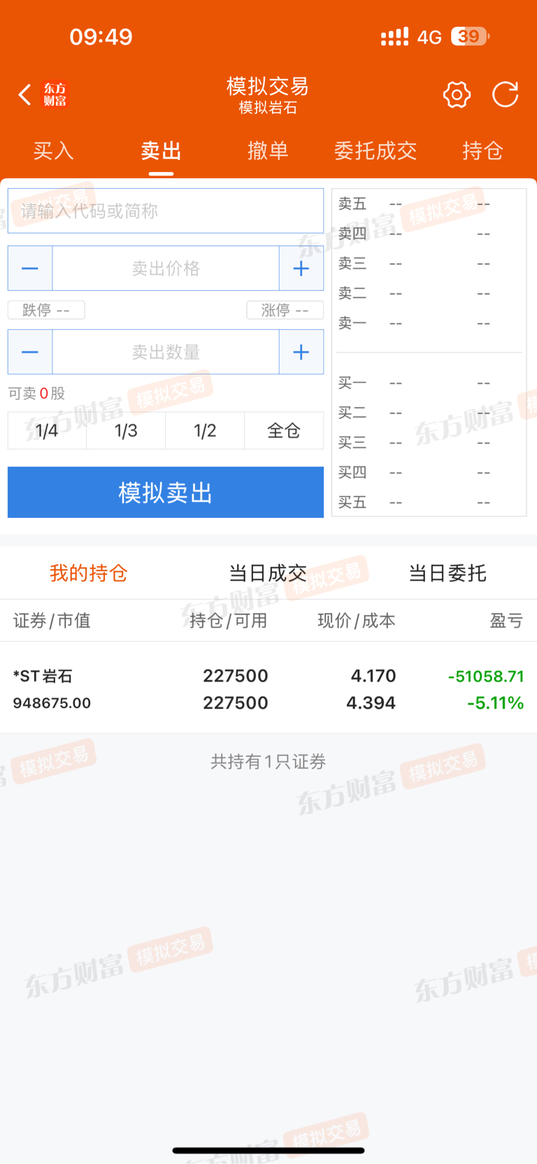 $*ST岩石(SH600696)$ 今日模拟亏了5w