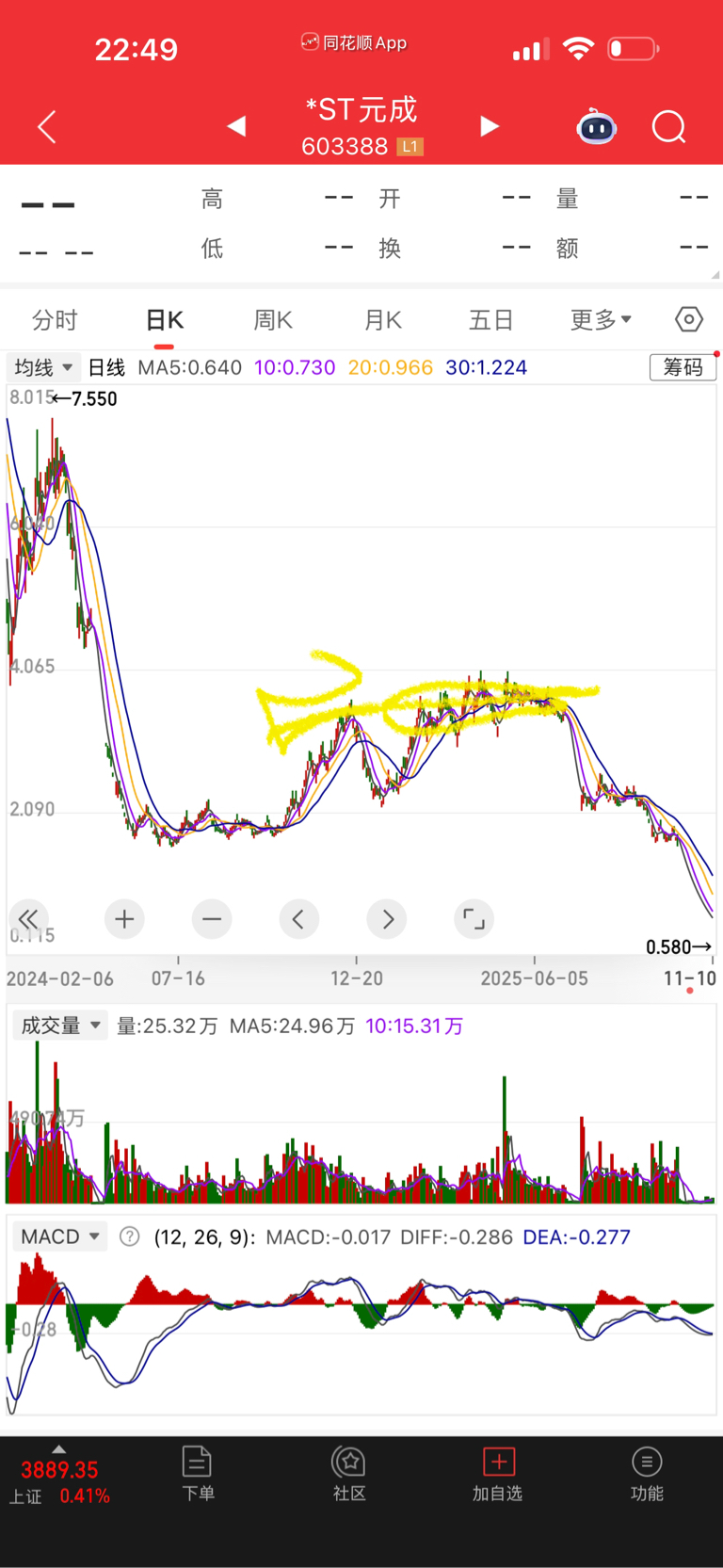 4.2元我没买st元成,一段时间后,大牛市逆下跌创新低,1.68元买了st元成,