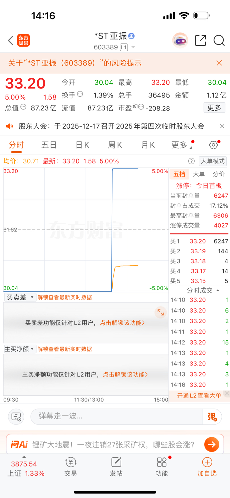 $*ST岩石(SH600696)$ 注意,地天了…卖出去,也买不进去