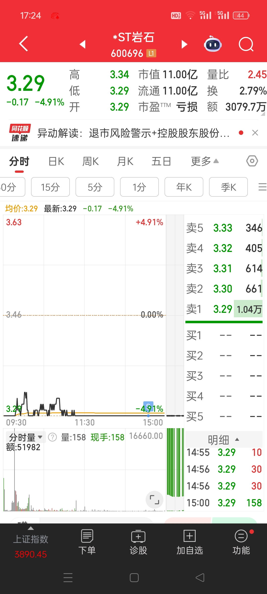 $*ST岩石(SH600696)$ 尾盘割了!你可以涨了!