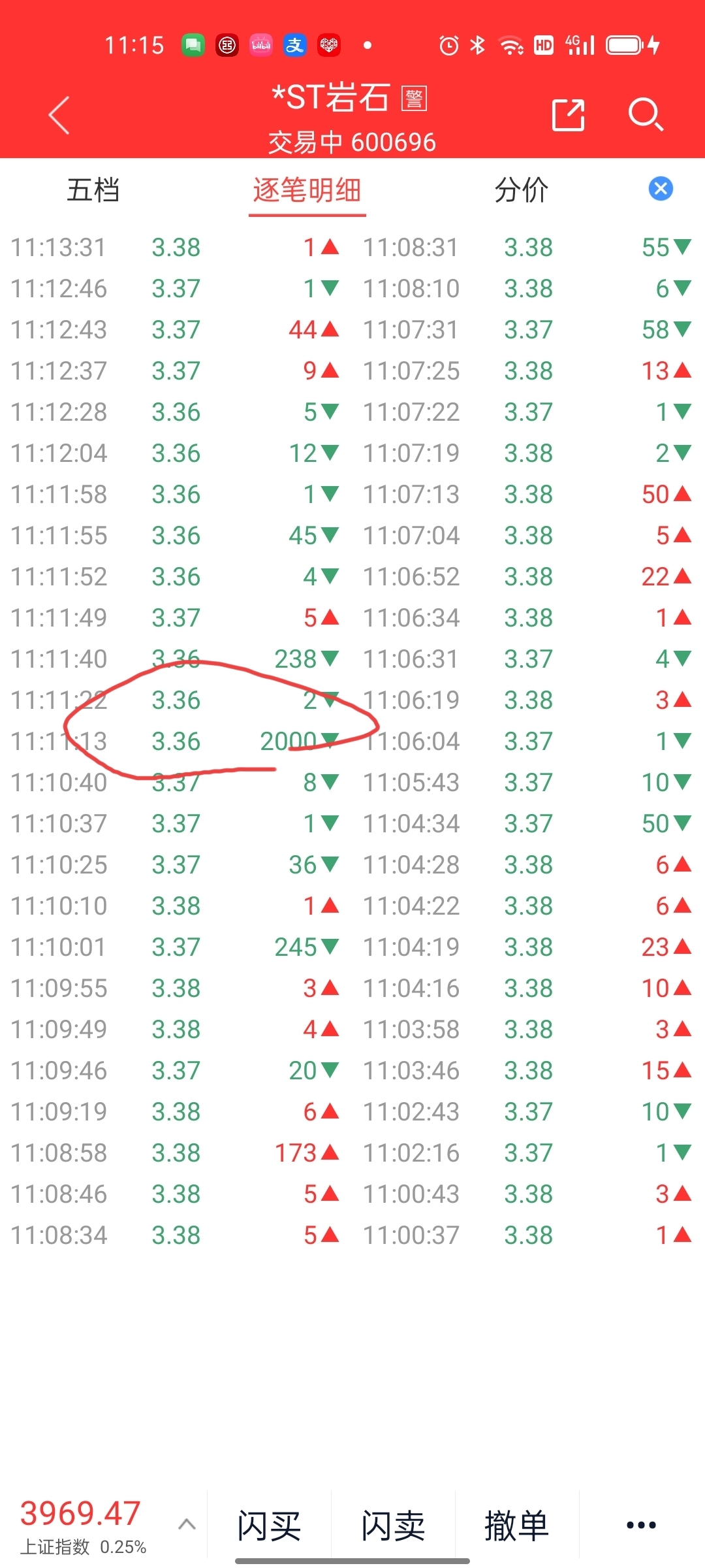$*ST岩石(SH600696)$ 336,2000手,主力出货坚决