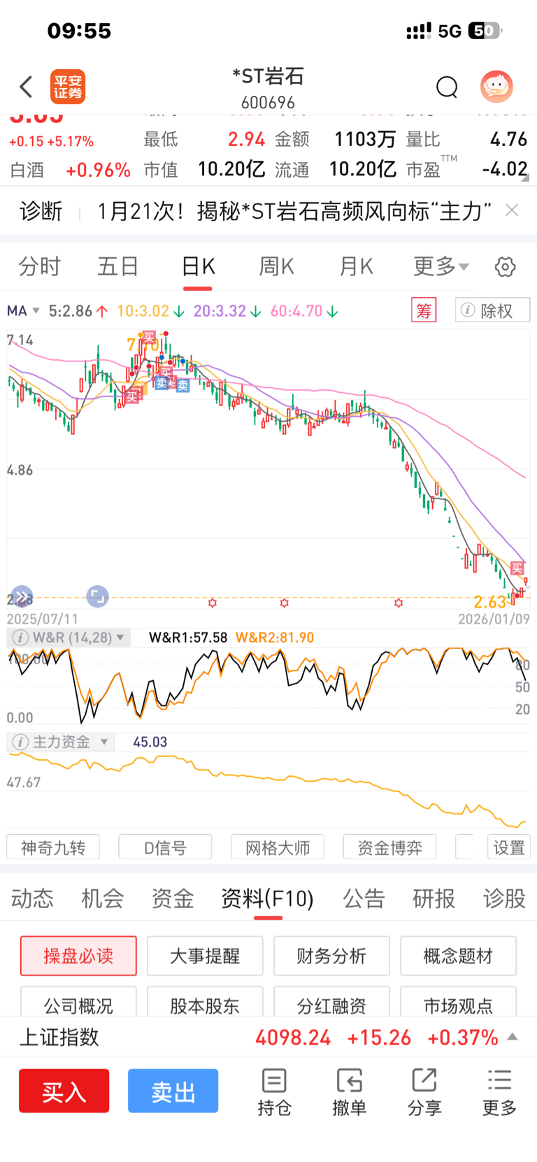 $*ST岩石(SH600696)$ 6元玩了玩走了,前天又来了