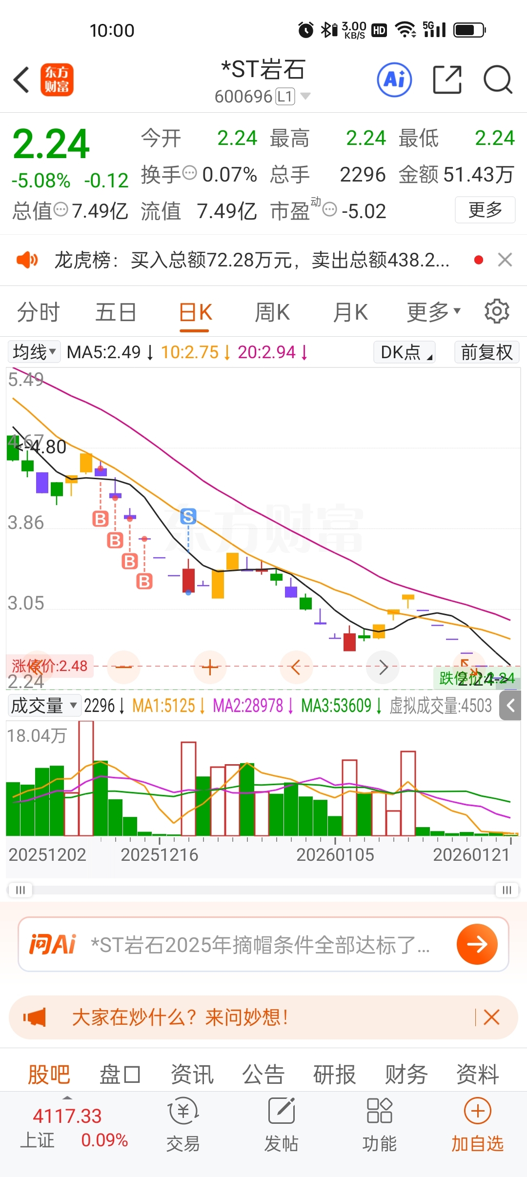 $*ST岩石(SH600696)$ 地天板走的