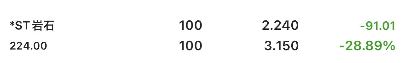 $*ST岩石(SH600696)$ 一共亏了91元了。今天亏了12,主力你不要开板,让我继续亏,把这200多块钱亏剩三十四元就行我拿着当纪念。