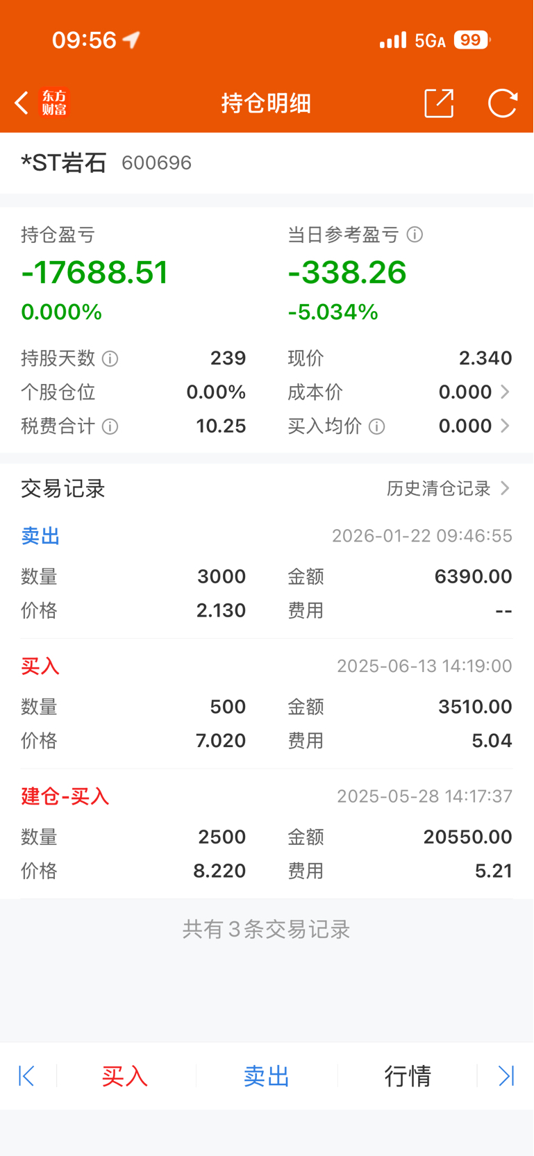 $*ST岩石(SH600696)$ 再见,删自选,你就是涨到天上去我也不羡慕,8块多的成本,买来就没涨过