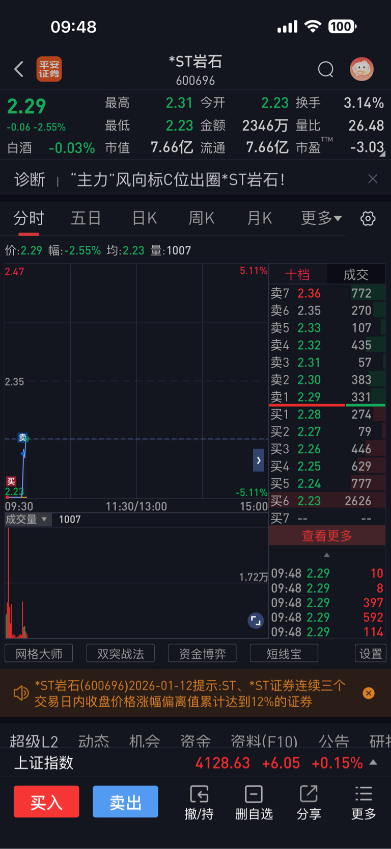 $*ST岩石(SH600696)$ 3.28走的,忘记发图了,结果给买了....拿走你2万不过分,就吃了200多手地板的,均价1.67