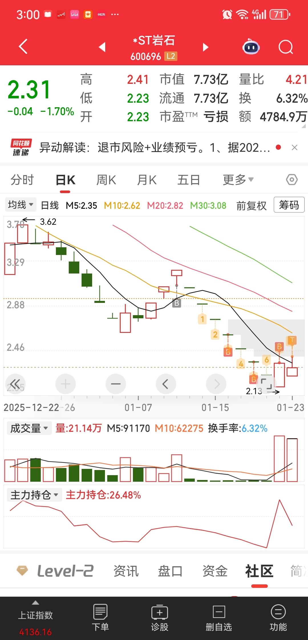 $*ST岩石(SH600696)$ 养成良好习惯,自觉补仓