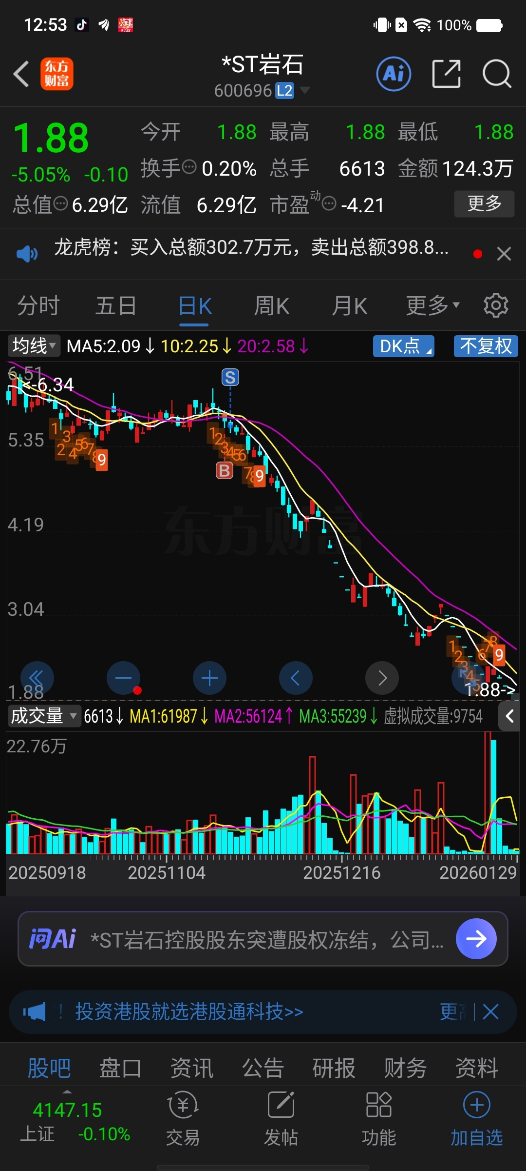 $*ST岩石(SH600696)$ 还好跑得快