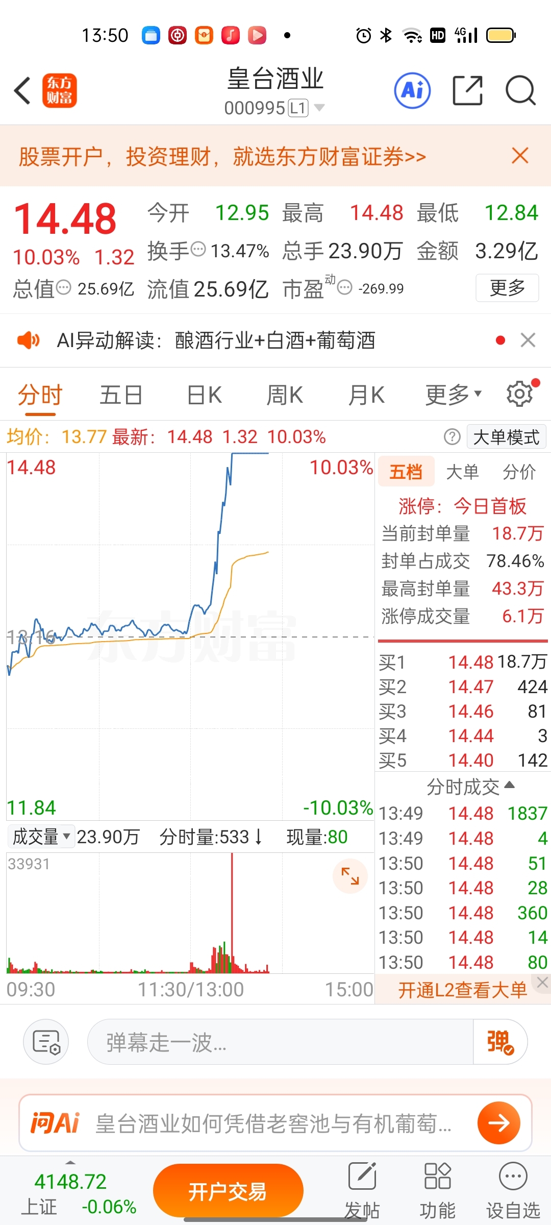 $*ST岩石(SH600696)$ 皇台涨仃,岩石借酒出货