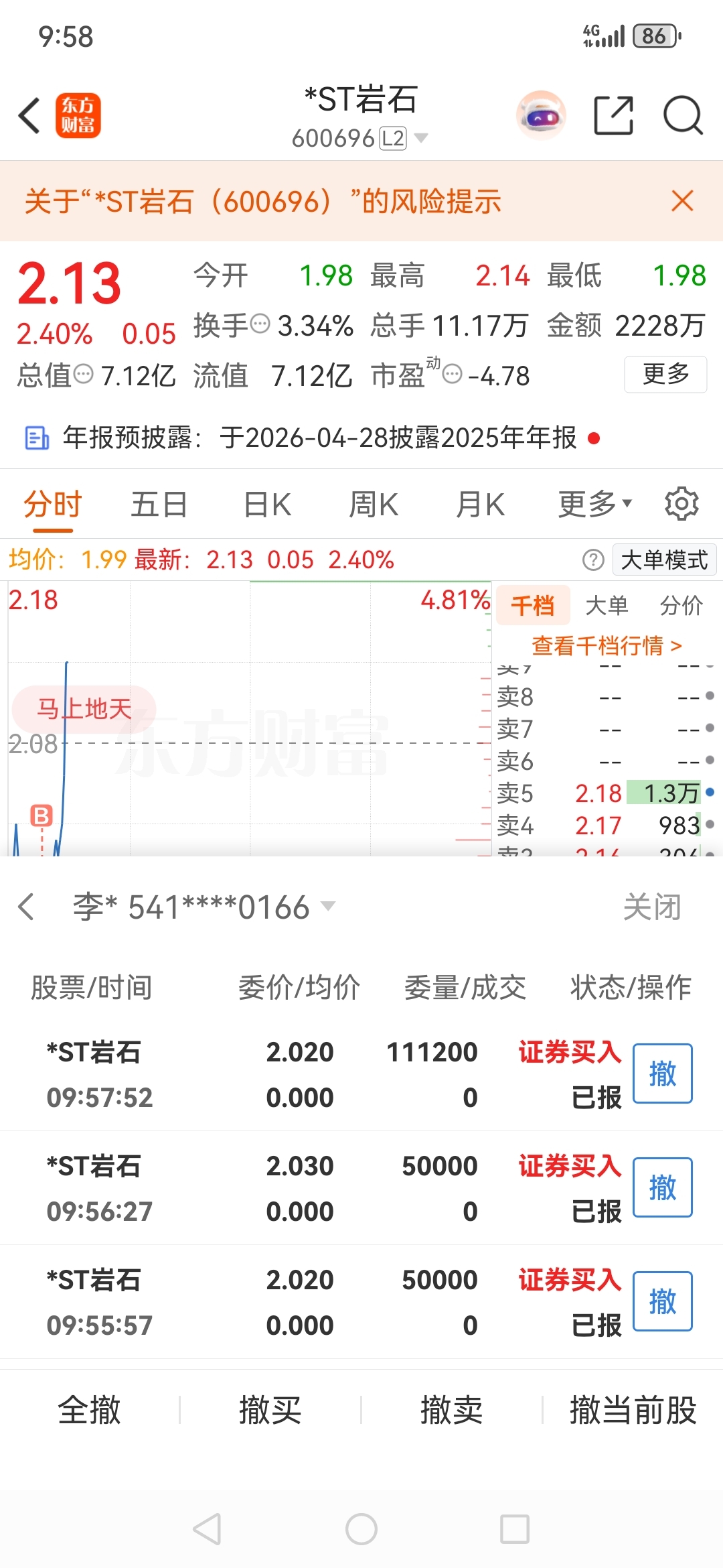$*ST岩石(SH600696)$ 今天能上去有我的功劳!用近百万拉抬股价!一起博傻!!