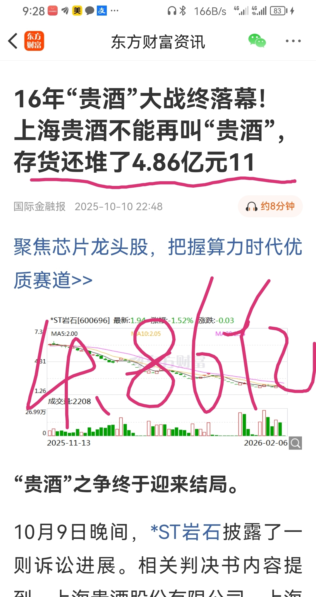 岩石股份并购重组!!净资产正0.86元!5亿酱香型白酒库存$ST京蓝(SZ000711)$ $ST新动力(SZ300152)$