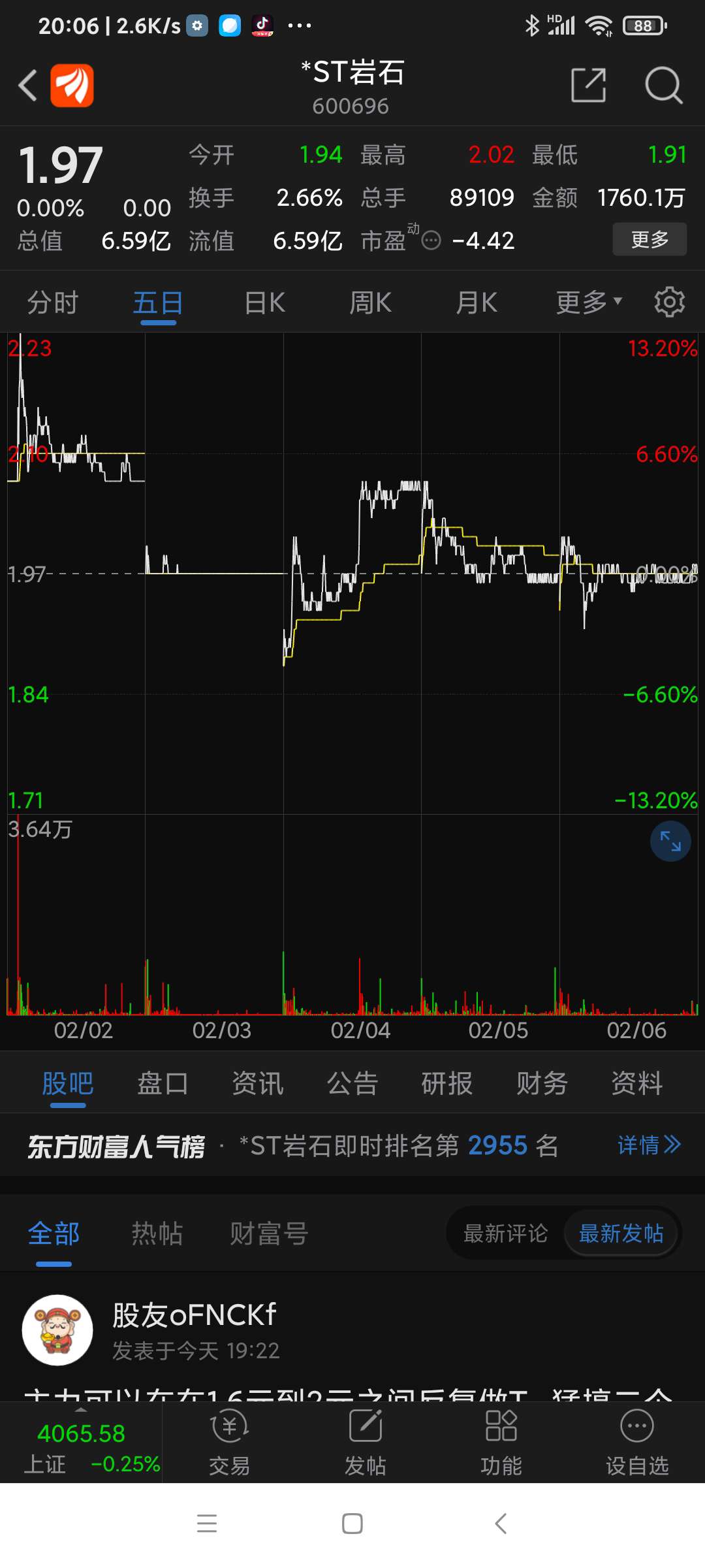 温馨提示: 1.根据《证券法》规定,禁止编造、传播虚假信息或者误导性信息,扰乱证券市场;2.用户在本社区发表的所有资料、言论等仅代表个人观点,与本网站立场无关,不对您构成任何投资建议。用户应基于自己的独立判断,自行决定证券投资并承担相应风险。《东方财富社区管理规定》