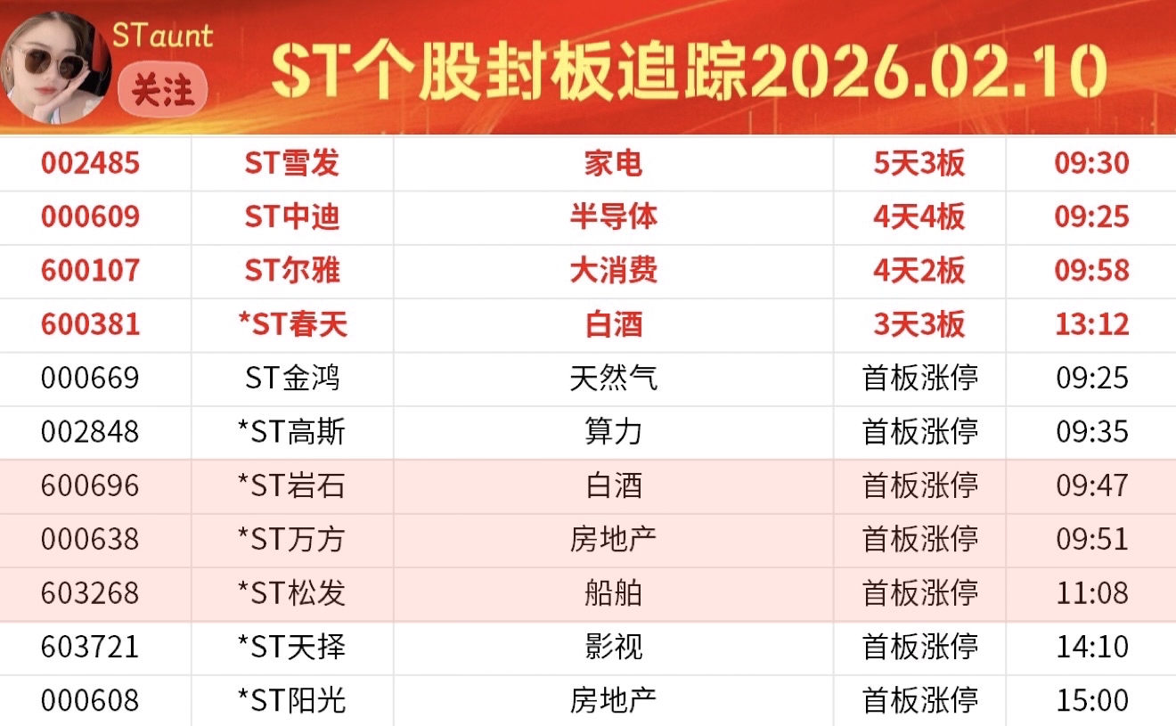 ST个股封板追踪C