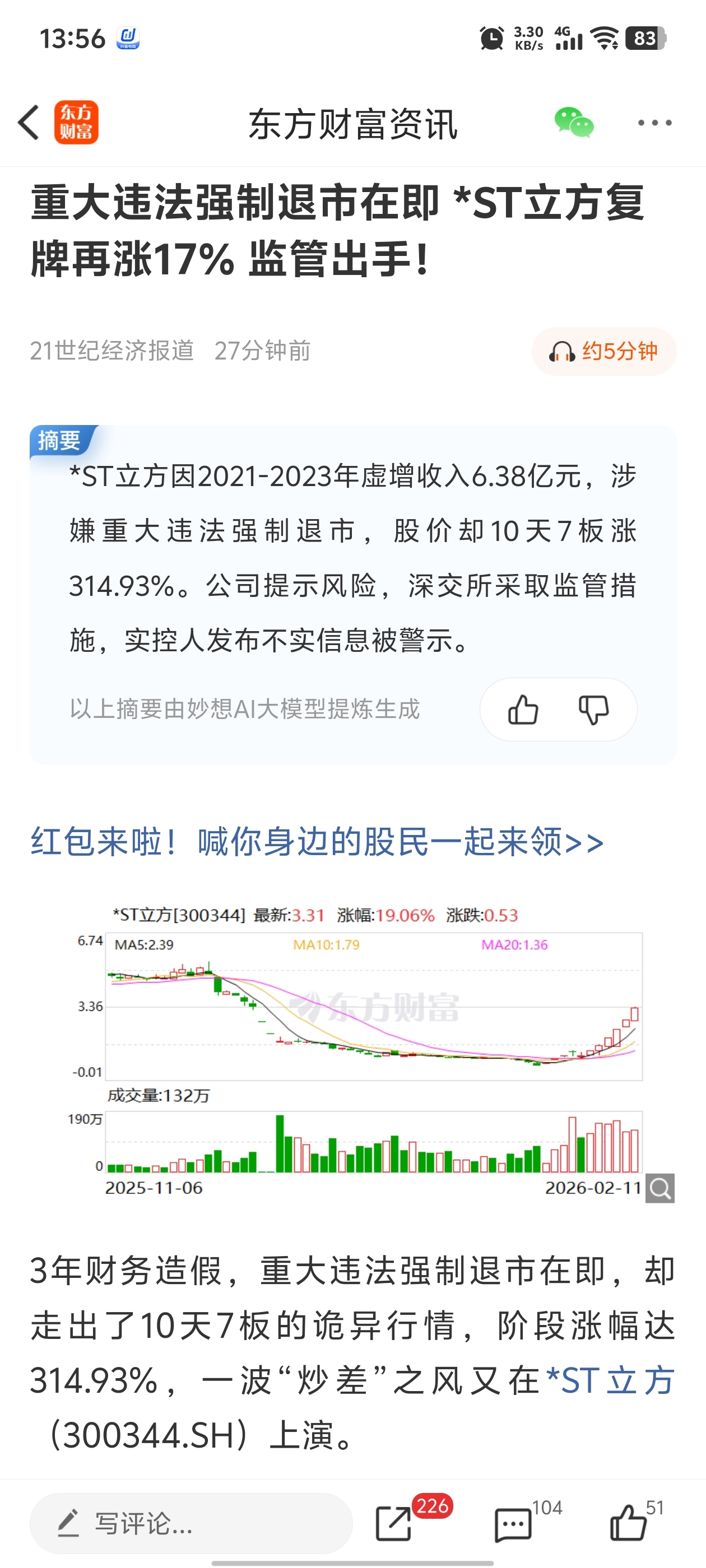 郑重声明:用户在财富号/股吧/博客等社区发表的所有信息(包括但不限于文字、视频、音频、数据及图表)仅代表个人观点,与本网站立场无关,不对您构成任何投资建议,据此操作风险自担。请勿相信代客理财、免费荐股和炒股培训等宣传内容,远离非法证券活动。请勿添加发言用户的手机号码、公众号、微博、微信及QQ等信息,谨防上当受骗!