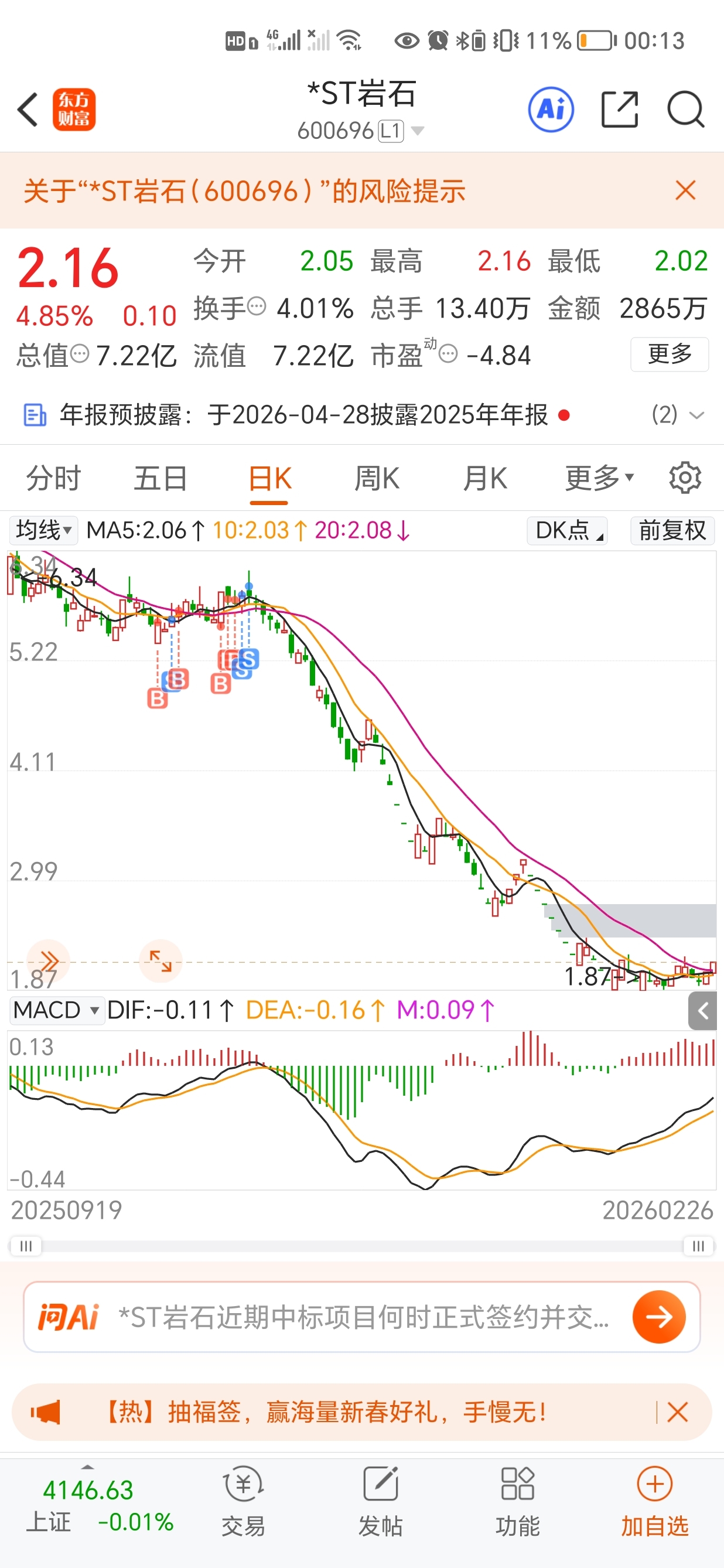 $*ST岩石(SH600696)$ 我嘞天!幸亏去年卖了,没再买,