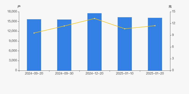 截至2025年1月20日,公司最新总股本为1.59亿股,其中流通股本为1.55亿股。户均持有流通股数量由上期的9518股上升至9625股,户均流通市值11.02万元。
