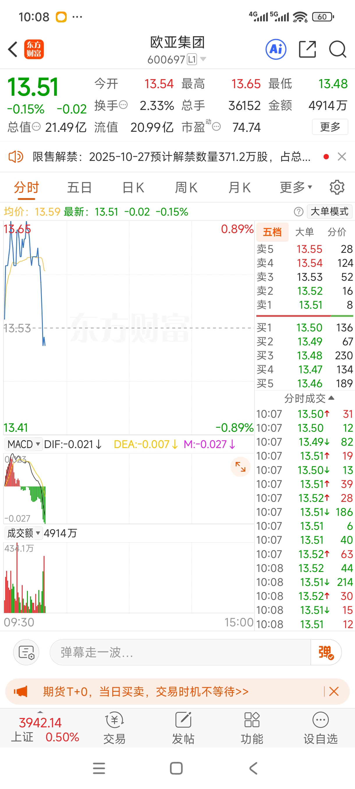 $欧亚集团(SH600697)$ 有些人就是有病,一个点都没涨就这样砸,希望你生娃都!