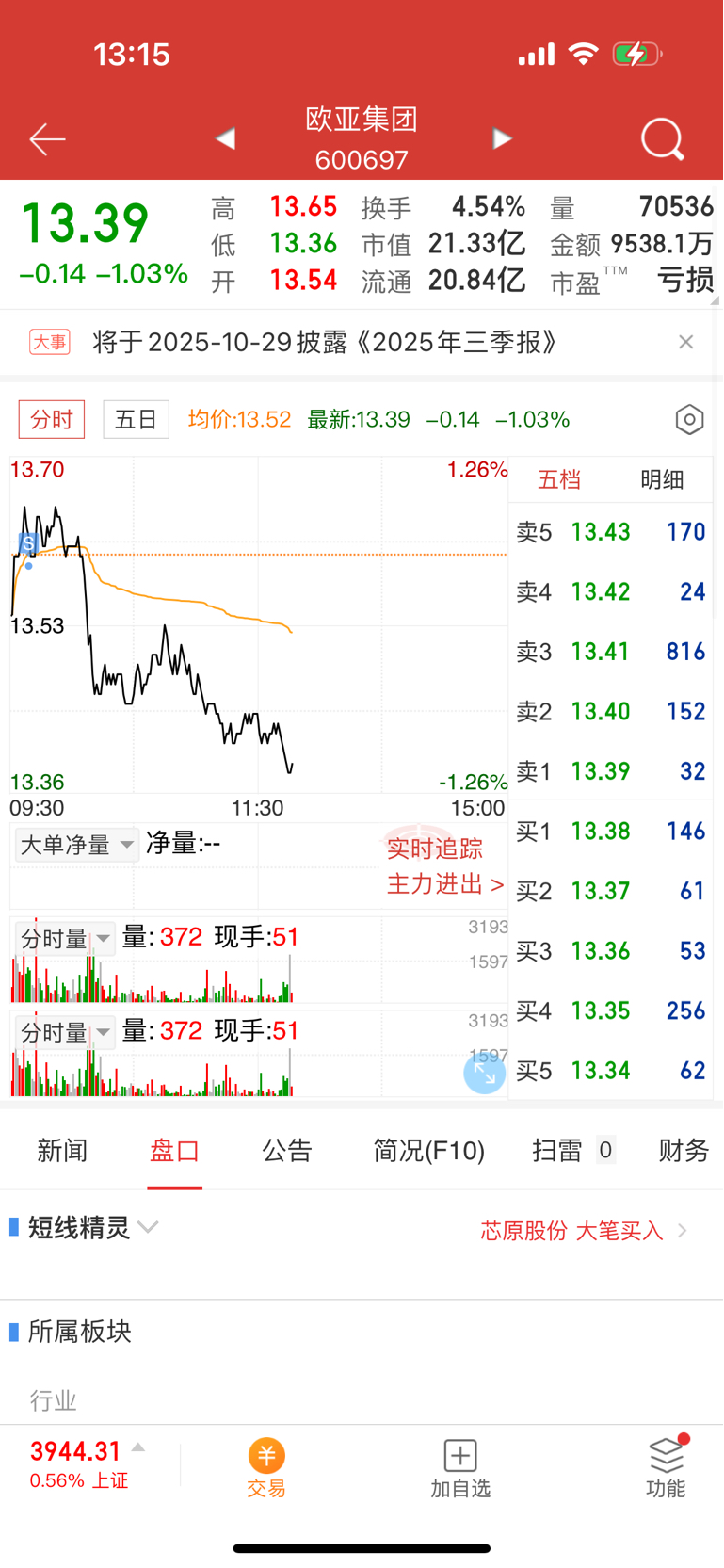 $欧亚集团(SH600697)$ 先走了.赚了几条烟.现在买这种票完全是在浪费时间