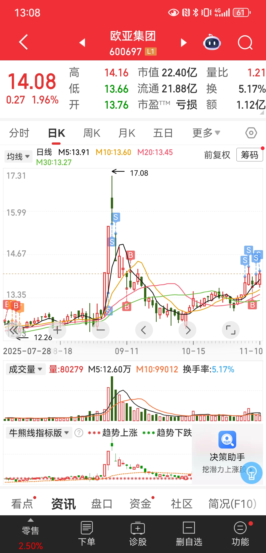 弱于板块继续跑,话说能不能来个大阳线,让我跑跑光啊