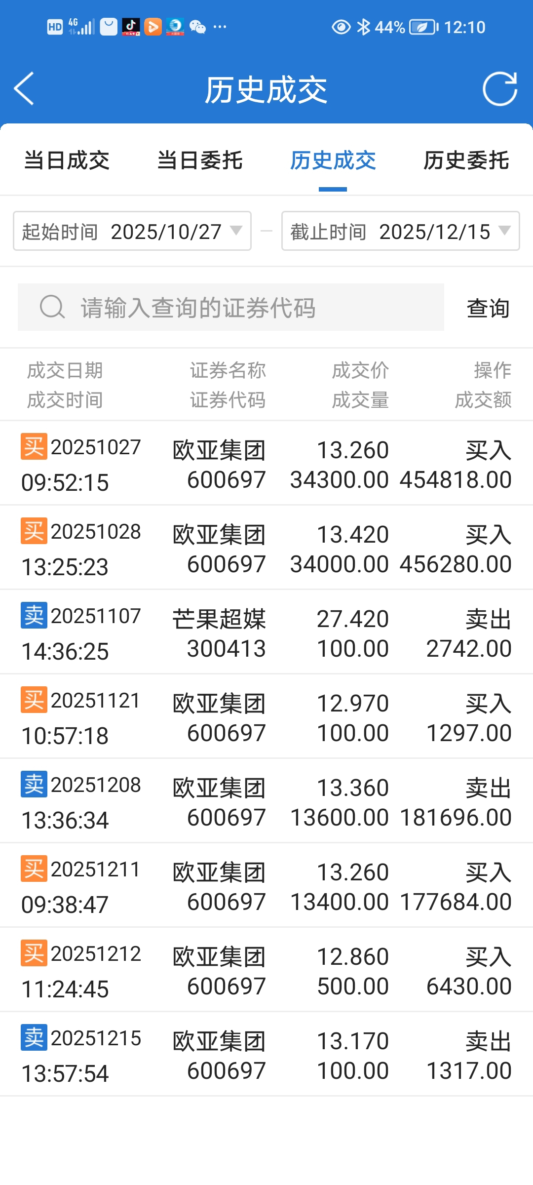 $欧亚集团(SH600697)$ 哈哈,终于吃肉了,此次是百货零售板块整体走强,估计能破今年最高价17.08元,现在应该是收割的季节,大家拿好,不能甩下车。