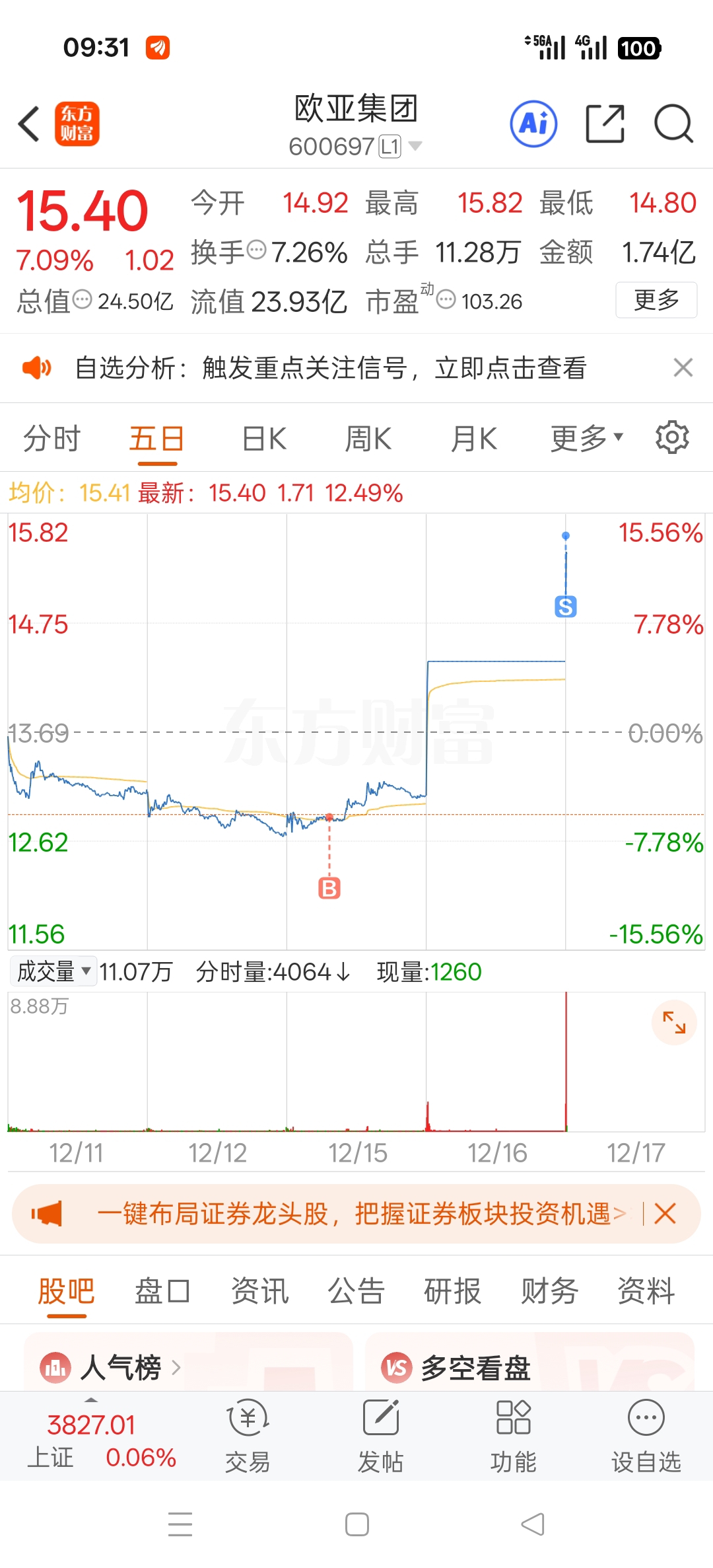 $欧亚集团(SH600697)$ 你敢跌我就敢补