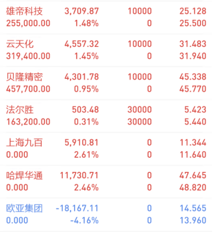 12月25日实盘记录,欧亚集团割肉了新进:雄帝科技,云天化,贝隆精密持有:法尔胜