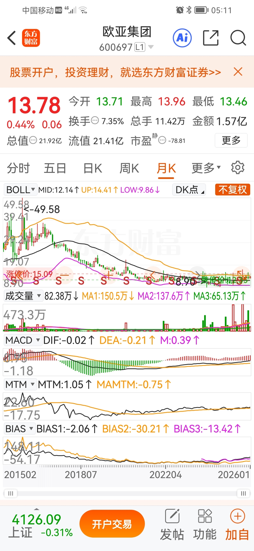 $欧亚集团(SH600697)$ #复盘记录# 中线波段,牛股,越跌越买。长期持有